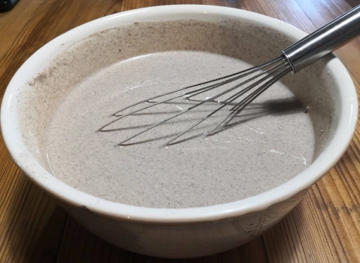 Incorporer le mélange eau/lait/levure dans la farine délicatement afin d'obtenir une pâte à crêpe relativement épaisse.