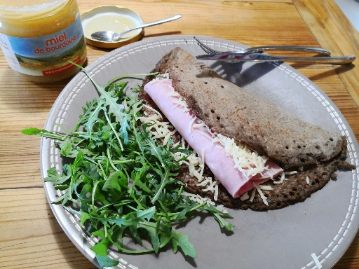 Dans un saladier, mélanger les farines de sarrasin et de blé ainsi que le gros sel.